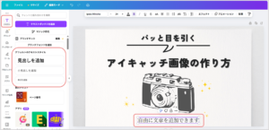 選択したテンプレートをベースに、自分好みのアイキャッチ画像を作成してください。