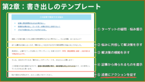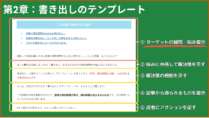 - 1段落目:ターゲットの疑問・悩み提示する