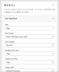 「Cool Tag Cloud」を追加すると、いくつかの設定欄が出てきます。