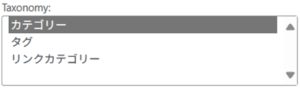 設定値:Taxonomy(分類)だけお好みで変更してください。