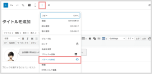 設置したボタンを選択し、ツールバーの「︙」ボタンをクリックします。