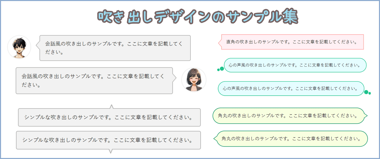 ここからは『吹き出し』のサンプルデザインを紹介していきます。