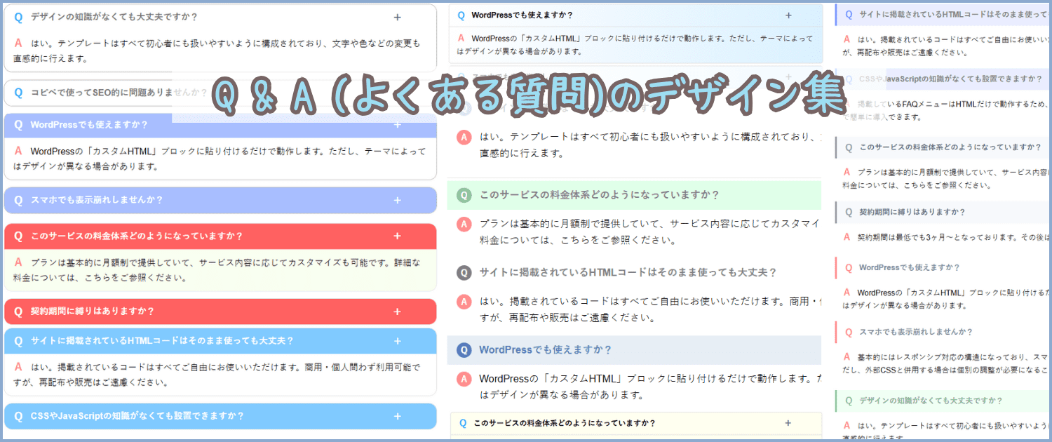 HTMLコピペでできるQ&A(FAQ)・よくある質問のデザイン集(CSS不要です)
