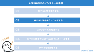 「手順2:AFFINGERをダウンロードする」を参考に、ダウンロードしてください。