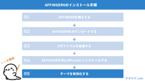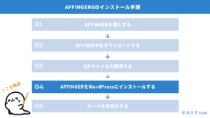この記事では、AFFINGER6のインストール方法について、画像ベースでわかりやすくお伝えしていきます。
