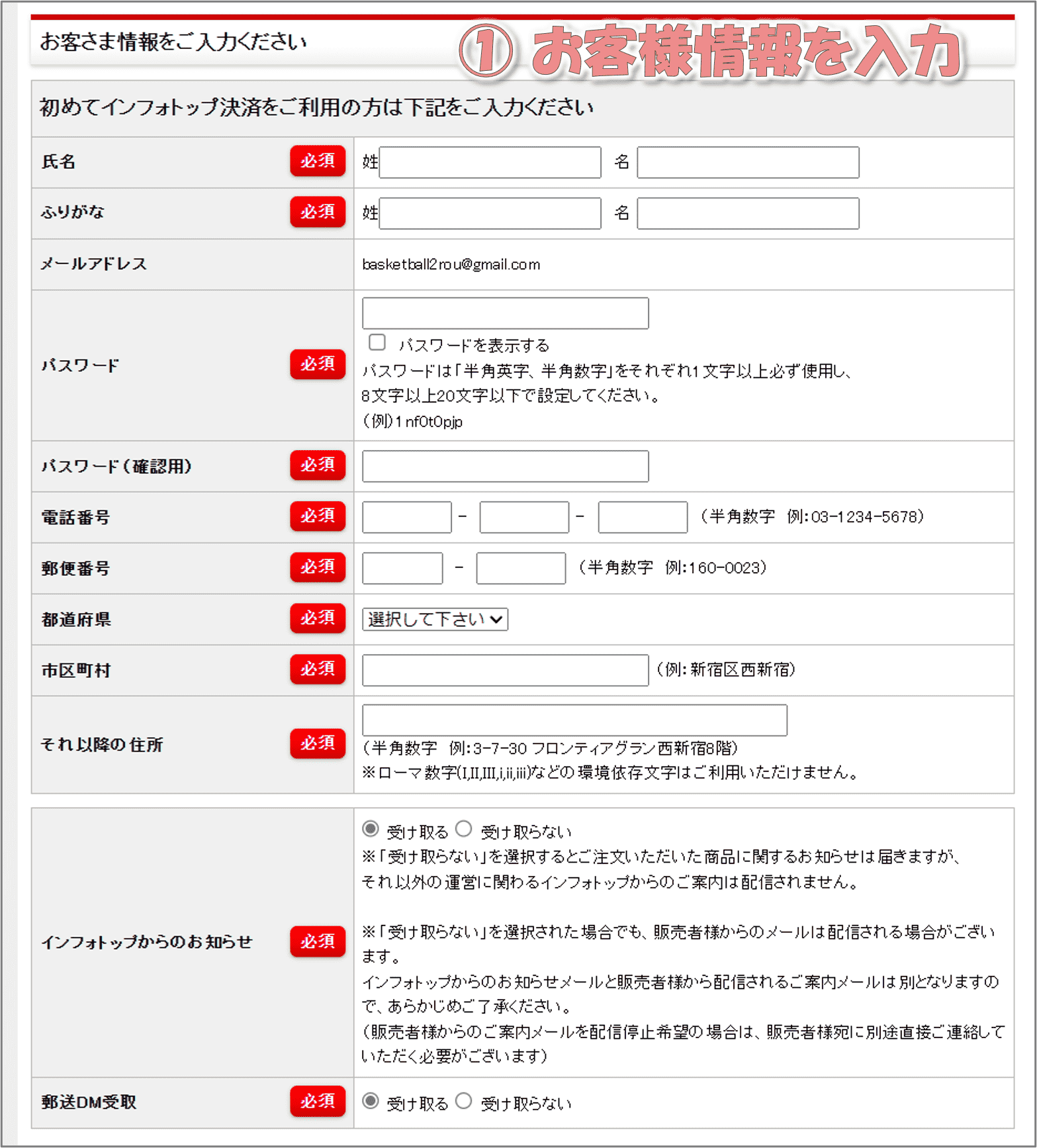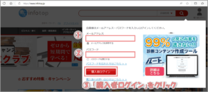 「初めてインフォトップをご利用の方はこちら」をクリックしましょう。