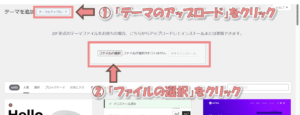 『テーマをアップロード』をクリック後、「ファイルの選択」をクリックします。