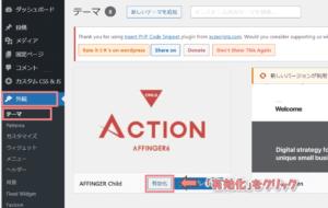 最後に、AFFINGERを有効化して、WordPressで使えるようにします。