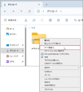さきほどダウンロードしたフォルダを右クリックして「すべて展開」を選択します。