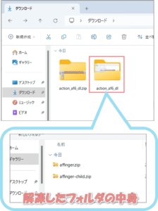 ※ 解凍したフォルダ内には「affinger6-child.zip」と「affinger6.zip」の2つのファイルが存在しますが、これらのファイルについては、解凍しないようにしてください。