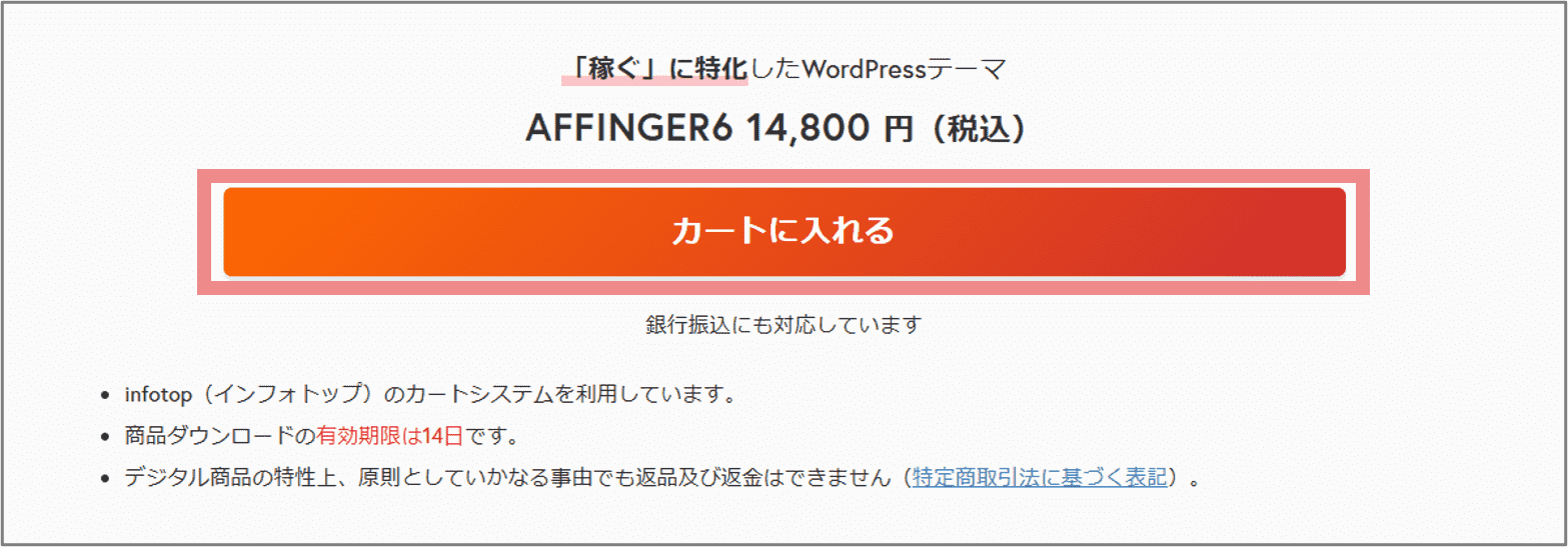 AFFINGER6( 単品製品) | 14,800 円 | ① AFFINGER6 | |