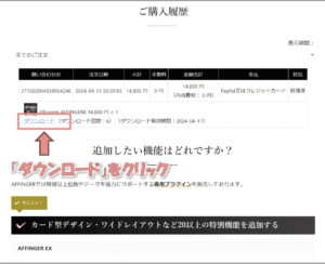 購入履歴の一覧が表示されるので、AFFINGER6をダウンロードしましょう。