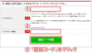 メールアドレスを入力した後、確認のためにもう一度同じメールアドレスを入力して「認証コード送信」をクリックします。