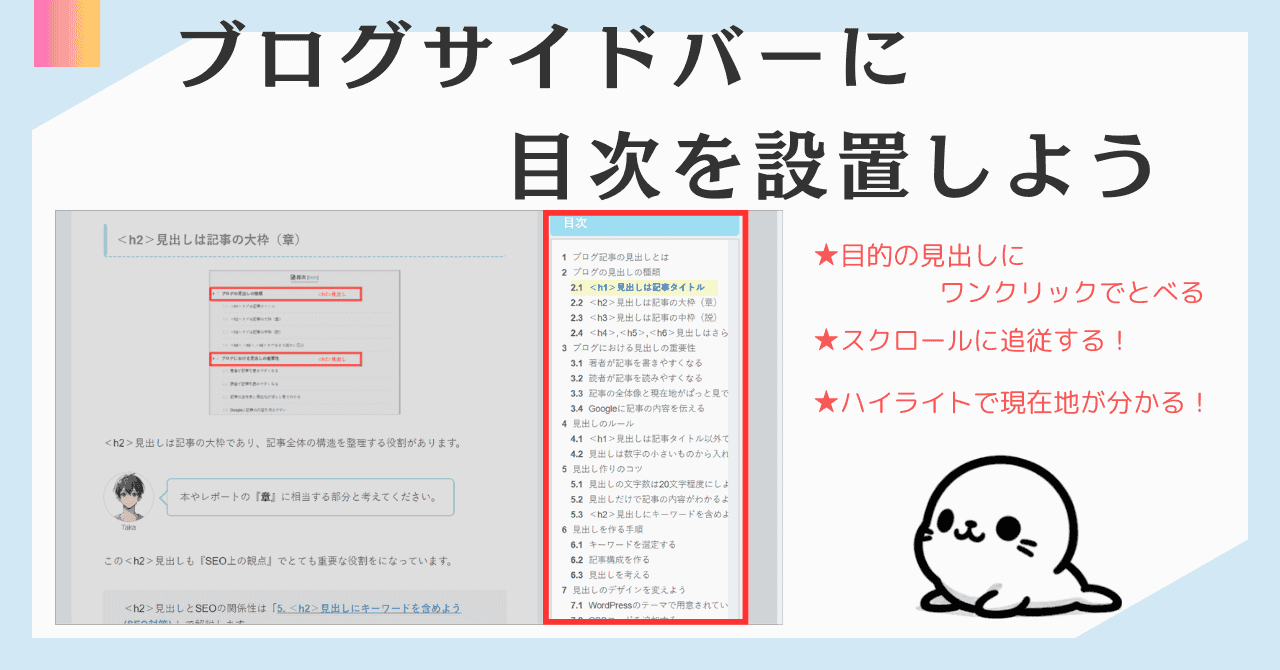 この記事ではブログサイトのサイドバーに『目次』を設置する方法をご紹介します。