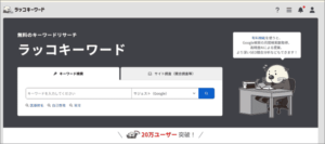 ラッコキーワードは、無料で「サジェストキーワード」を調査できる便利ツールです。
