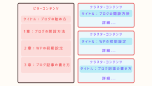 たとえば、ピラーコンテンツが「ブログの始め方」なら、