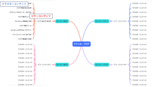 次のような『マインドマップ』を活用すれば、トピッククラスター構造を視覚的に整理することができますよ。