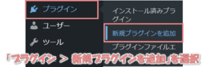 WordPress管理画面にアクセスして「 プラグイン」>「新規プラグインを追加 」を選択します。