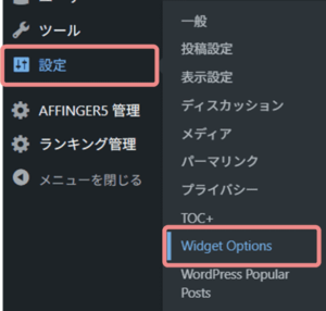 WordPress の左メニューから「設定」>「Widget Options」を選択してください。