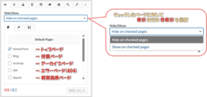 1. 「Hide on Checked pages」 または 「Show on Checked pages」 のいずれかを選択