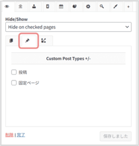 プラグインの設定が終わったら、ページごとのウィジェット表示・非表示を設定していきましょう。