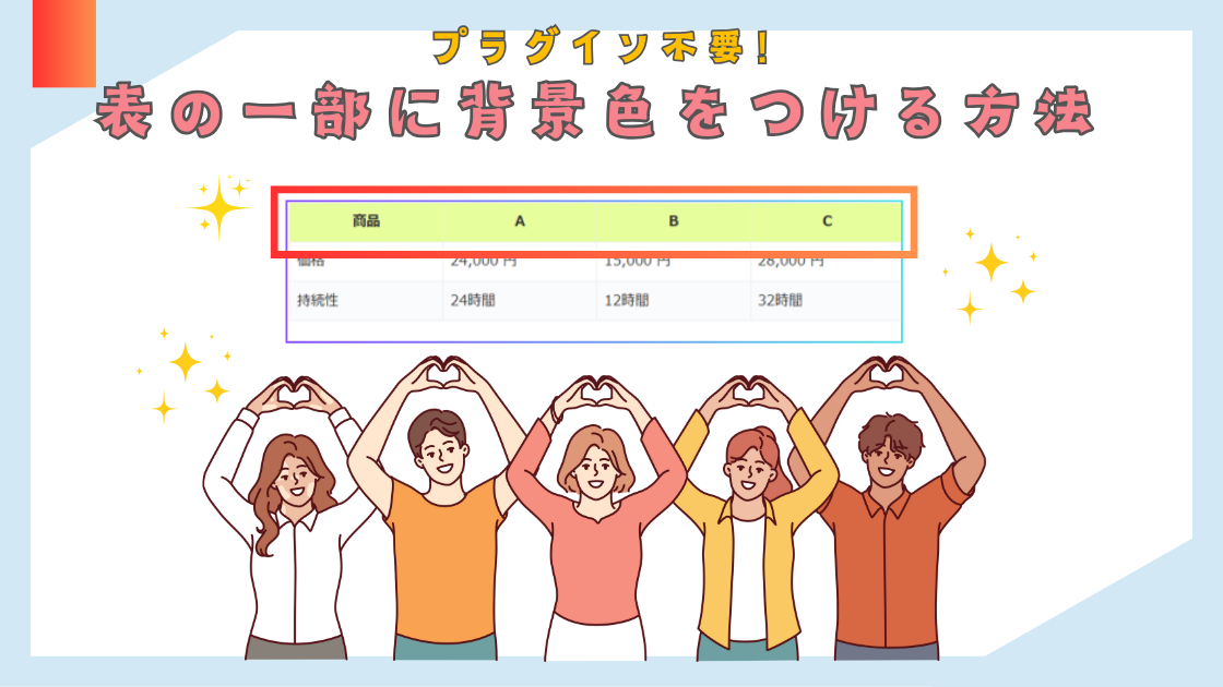 そこで今回は プラグイン不要で、表の一部分を色付けする方法を紹介します!