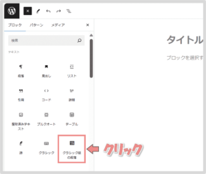 ブロックリストから 「クラシック版の段落」 を選択します。
